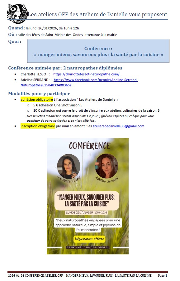 Conférence « manger mieux, savourer plus : la santé par la cuisine »